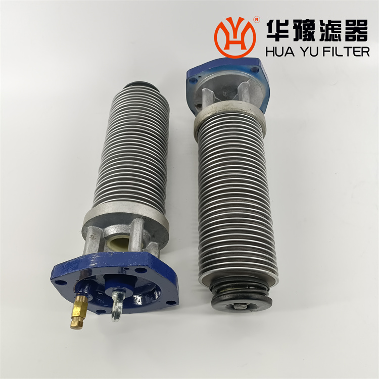 每一濾芯組件由濾器蓋、濾芯套筒、濾片及濾片圈等組成,濾器蓋頂部裝有放氣閥,供排出濾器內(nèi)腔的空氣用。 濾片套在濾芯套筒上,是濾器的主要過濾元件,由濾網(wǎng),支承網(wǎng)及波紋隔盤等組成,濾網(wǎng)的網(wǎng)目數(shù)由用戶根據(jù)需要選用。轉(zhuǎn)換閥體是由鑄鋁鋁合金制成的椎體,與閥孔研磨配合,閥體上鑄有上下兩油道孔,上油道孔一端通濾芯上方油腔,一段通濾器出口,下油道孔一段通濾芯腔,一段通濾器進(jìn)口,當(dāng)轉(zhuǎn)換閥迅速從一極限位置轉(zhuǎn)至另一極限位置時,閥體將一濾芯腔的通路關(guān)閉,而將另一濾芯腔的通路打開,此時,壓力油從濾器進(jìn)口流入濾芯腔,經(jīng)濾網(wǎng)過濾后的清潔油經(jīng)上方油腔從出口流出,達(dá)到濾清油液的目的。轉(zhuǎn)換閥體軸端頭上的箭頭指向接通的濾芯腔的一邊。