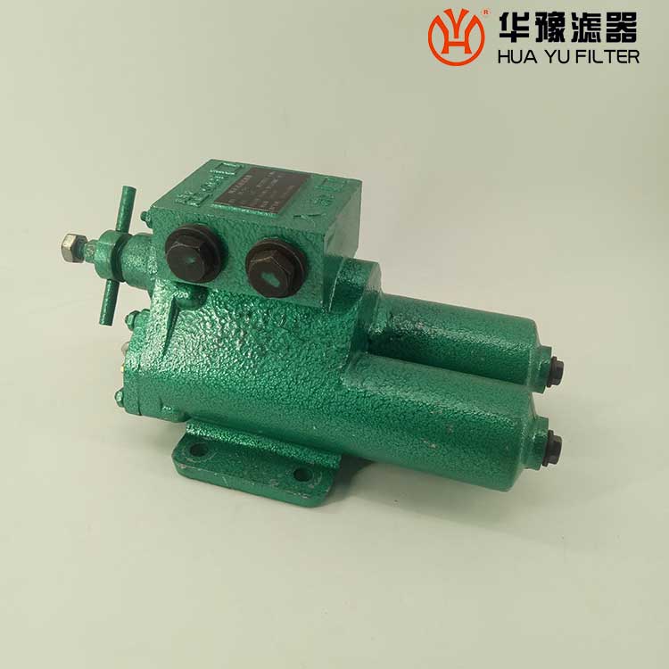 每一濾芯組件由濾器蓋、濾芯套筒、濾片及濾片圈等組成,濾器蓋頂部裝有放氣閥,供排出濾器內(nèi)腔的空氣用。 濾片套在濾芯套筒上,是濾器的主要過濾元件,由濾網(wǎng),支承網(wǎng)及波紋隔盤等組成,濾網(wǎng)的網(wǎng)目數(shù)由用戶根據(jù)需要選用。轉(zhuǎn)換閥體是由鑄鋁鋁合金制成的椎體,與閥孔研磨配合,閥體上鑄有上下兩油道孔,上油道孔一端通濾芯上方油腔,一段通濾器出口,下油道孔一段通濾芯腔,一段通濾器進(jìn)口,當(dāng)轉(zhuǎn)換閥迅速從一極限位置轉(zhuǎn)至另一極限位置時(shí),閥體將一濾芯腔的通路關(guān)閉,而將另一濾芯腔的通路打開,此時(shí),壓力油從濾器進(jìn)口流入濾芯腔,經(jīng)濾網(wǎng)過濾后的清潔油經(jīng)上方油腔從出口流出,達(dá)到濾清油液的目的。轉(zhuǎn)換閥體軸端頭上的箭頭指向接通的濾芯腔的一邊。